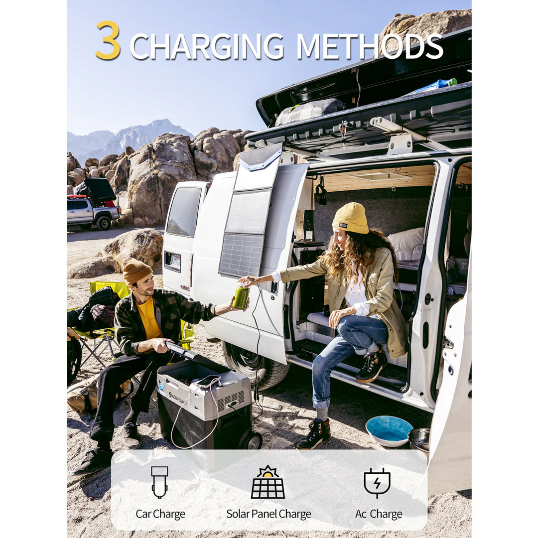 The energy-saving design allows it to be used continuously for 10 hours at 0℃/32℉. It has a 173Wh removable lithium battery that can be charged through a 120v AC, 12v/24V DC adapter or 12v solar panel, which truly supports wireless use. You can purchase additional batteries so that items can keep cool even when you turn off the power during your journey.